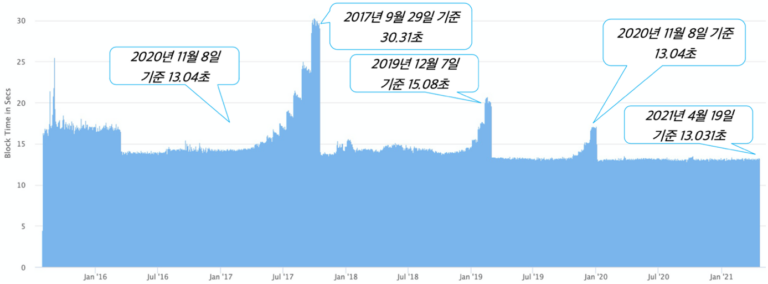 이처럼 사용자는 빠른 트랜잭션 실행을 위해 높은 수수료를 지불해야 한다. 참고로 , 사상 최고치 트랜잭션이 발생한 2021년 4월 20일의 경우 $32.77를 지불해야 트랜잭션을 처리할 수 있었다.