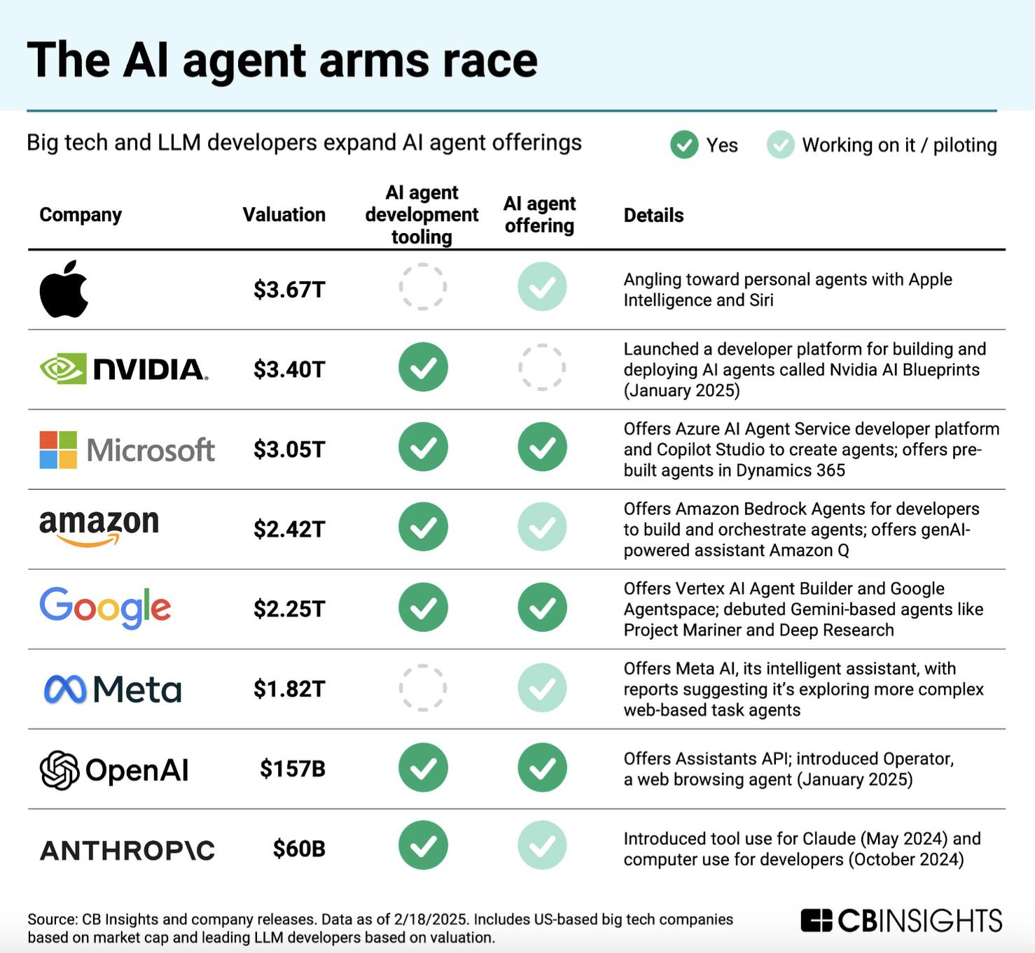 특히, 대형 기술 기업과 스타트업들이 AI 에이전트 시장에서 치열한 경쟁을 벌이고 있으며, AI 인프라 및 애플리케이션 투자도 급증하고 있습니다.