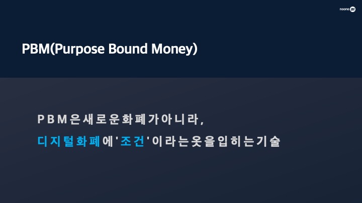 PBM 바우처 (요리): 예금토큰에 스마트 컨트랙트 기술로 '특정 사용 조건'을 프로그래밍한 목적형 디지털 바우처입니다.