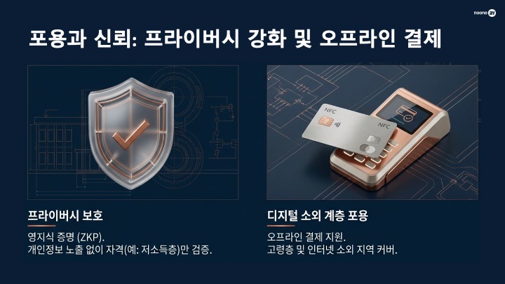 민관 협업 모델: 한국은행은 통화 안정성을 유지하는 '심판' 역할을 하고, 민간(네이버페이, 카카오페이, 삼성페이 등)은 기존 앱에서 정부 지원금을 편리하게 쓸 수 있도록 '사용자 경험' 혁신 경쟁을 펼칩니다.