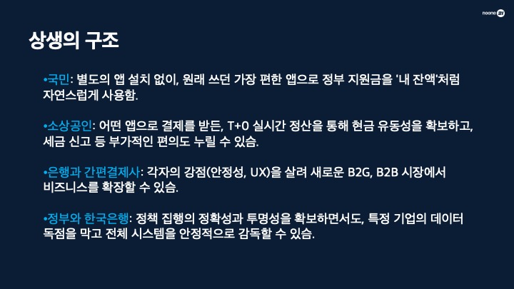 기존 문제: 부정 사용(깡 등)을 기술적으로 막기 어렵고, 복잡한 정산 절차로 소상공인은 돈을 받기까지 7~10일이 걸렸습니다.